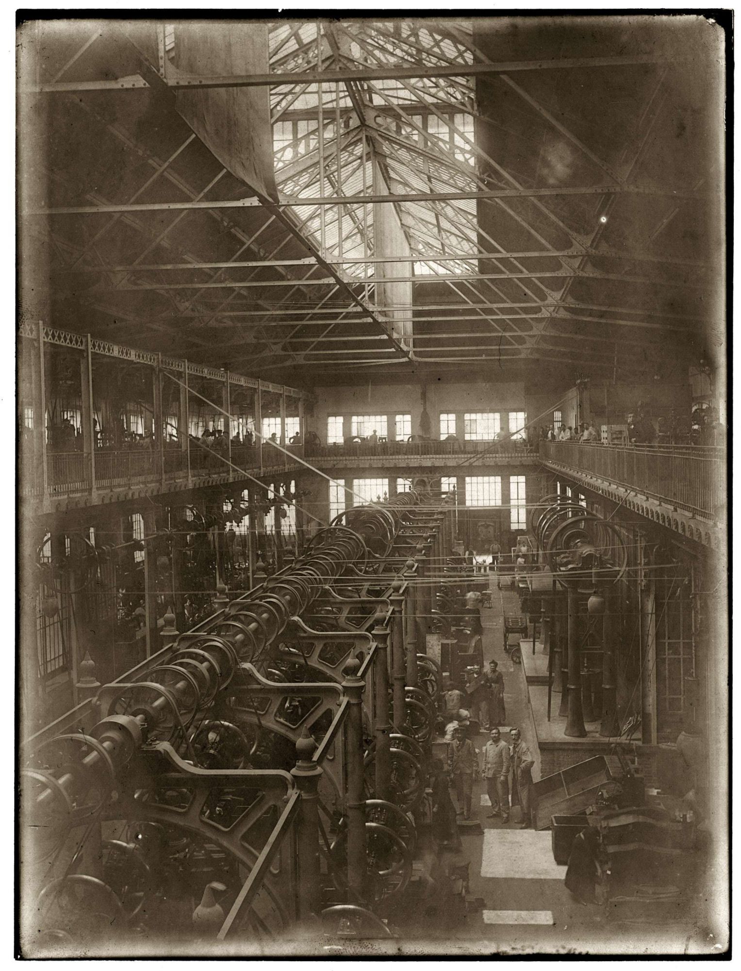 Au deuxième plan, les lampadaires de la grille ont été enlevés. La grande halle et la maison du gardien n’ont pas changé d’aspect : nous reconnaissons les grandes baies vitrées, l’alignement des petites fenêtres au-dessus, une partie du toit surélevé. Cependant, au centre de l’image, au-dessous du chapiteau, nous pouvons lire une nouvelle inscription : Théâtre des Quartiers d’Ivry. En 1990, l’usine a fermé. Les locaux ont été rachetés en 2009 par la ville d’Ivry pour créer, dans la grande halle, le centre national dramatique du Val-de-Marne. En 2016, la halle est aménagée en salle de théâtre avec des gradins et un grand hall d’accueil. Les architectes ont conservé de manière visible le volume et la structure métallique de l’ancienne manufacture.