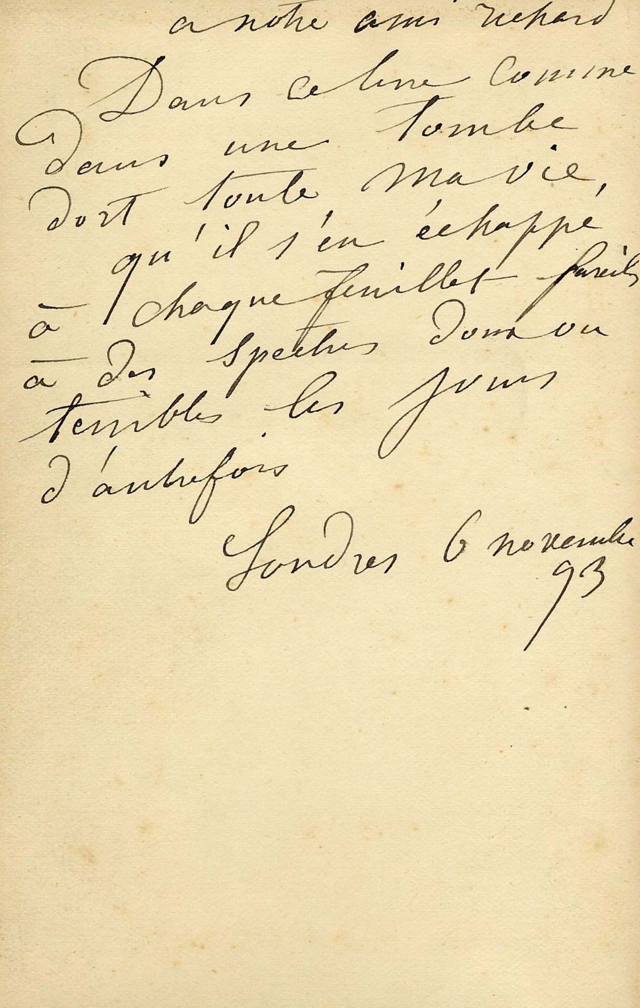 Qui est son ami « Richard » auquel Louise Michel dédicace l’exemplaire de son recueil de poésies À travers la vie désormais conservé aux Archives municipales ? Il peut s’agir de Victor Richard, membre de la municipalité du 8e arrondissement lors de la Commune de Paris. Réfugié en Grande-Bretagne, il s’installe comme épicier dans le quartier londonien où vivent les exilés français.