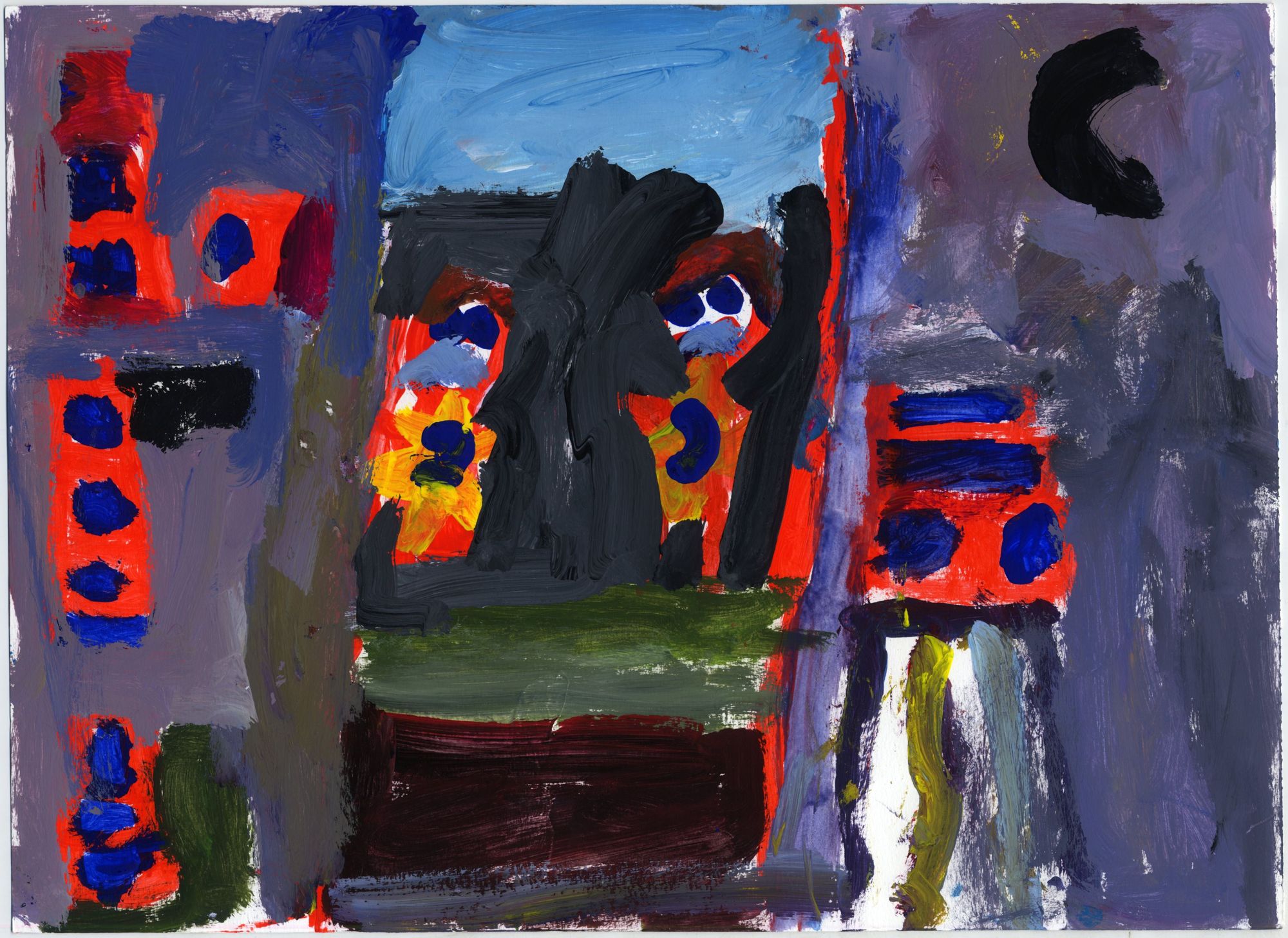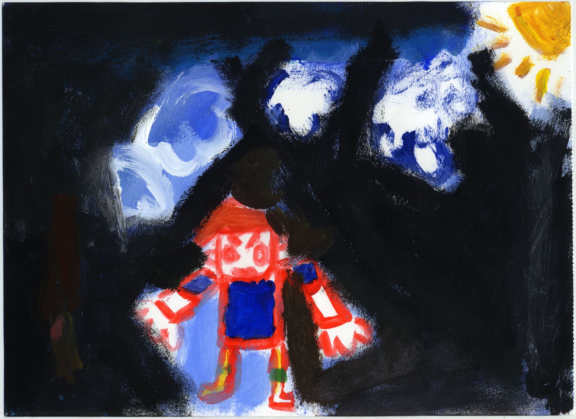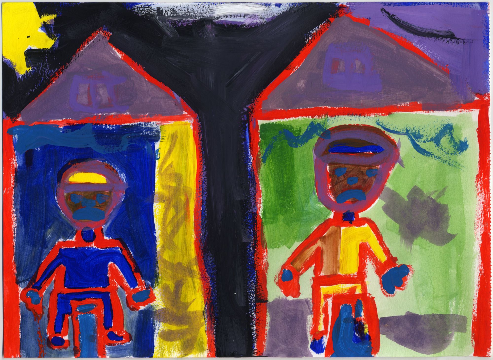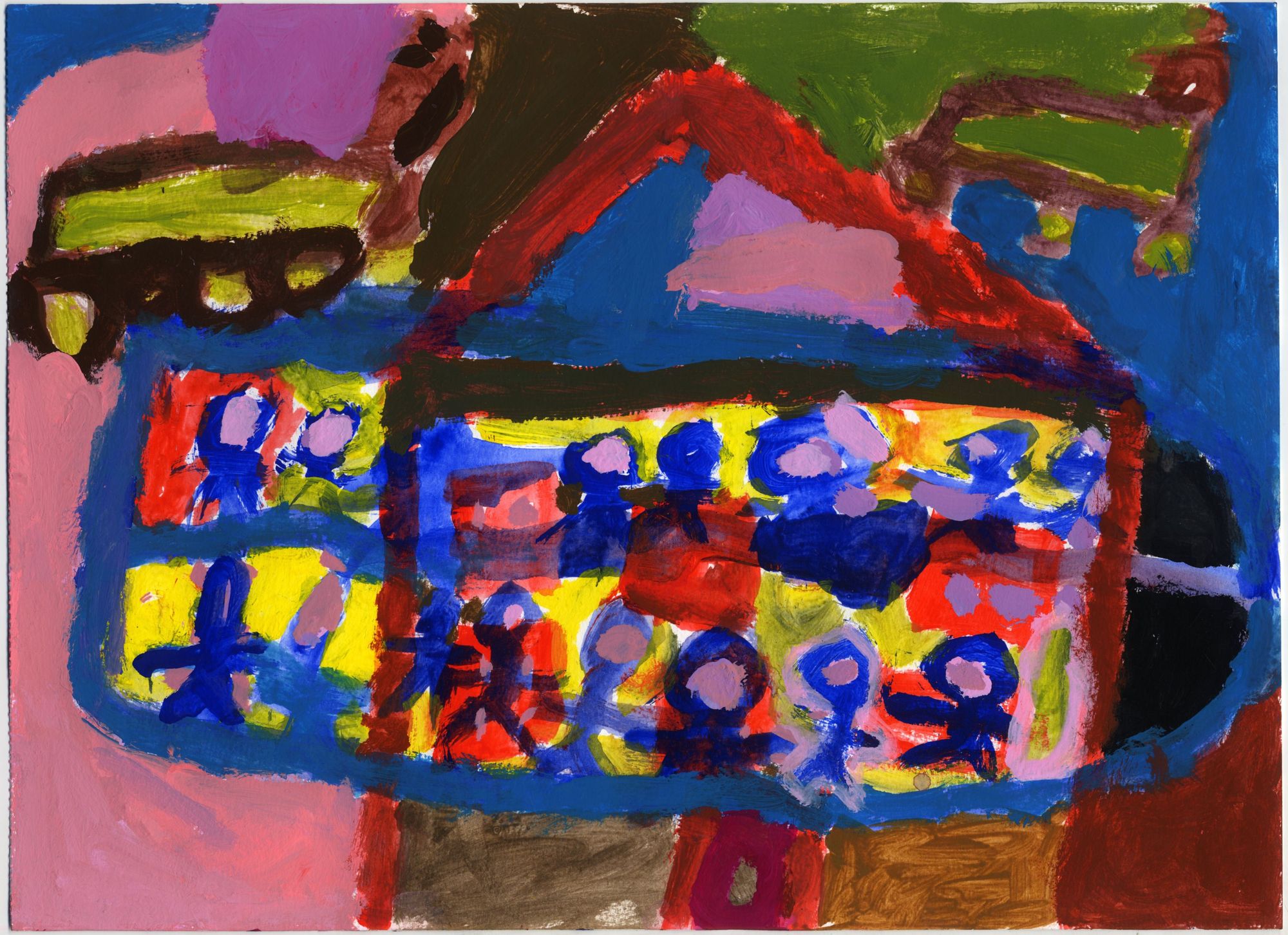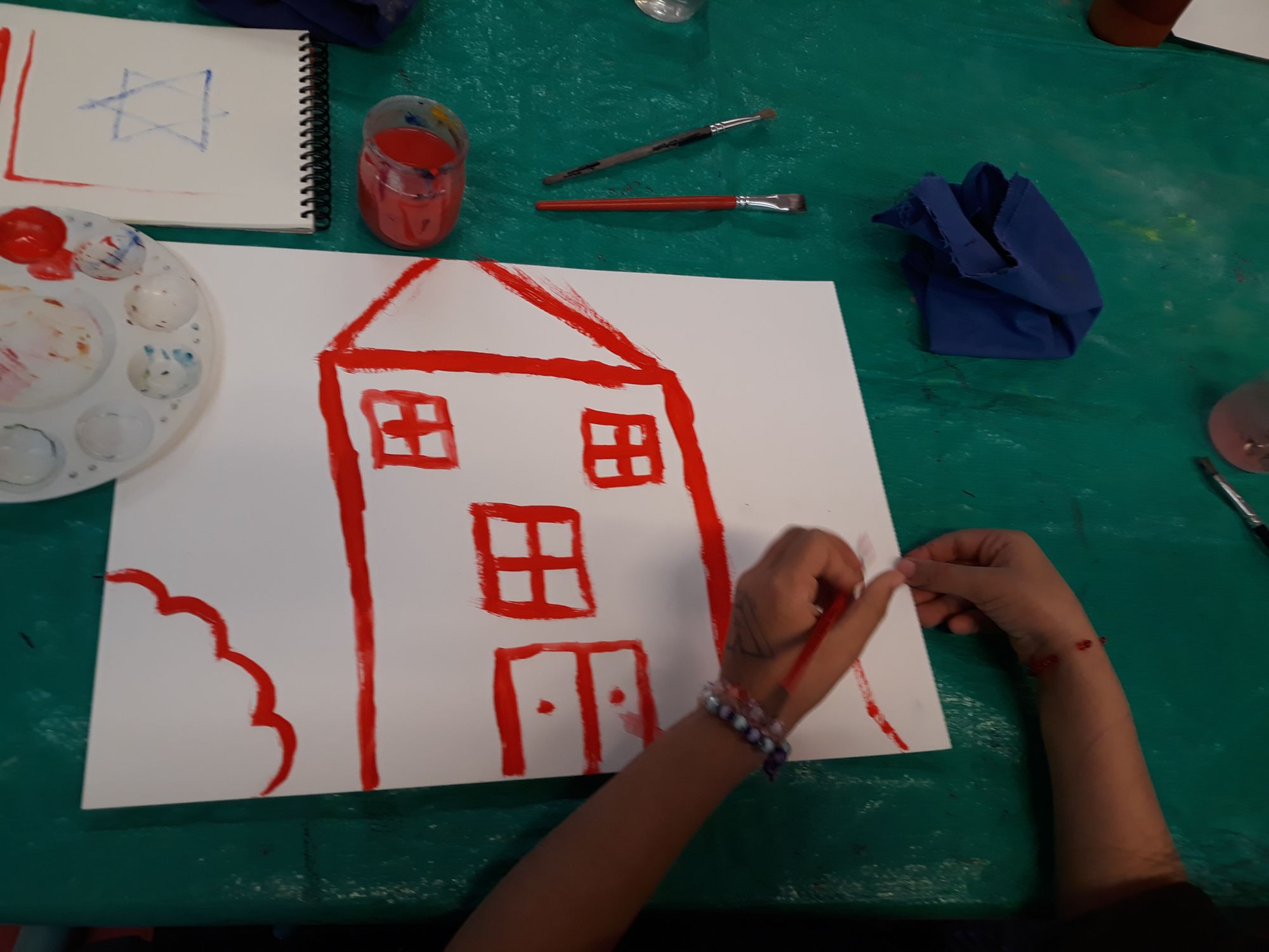 Séance 3 : Des reproductions des œuvres de Ceija Stojka (écrivaine et artiste peintre autrichienne et rom, rescapée du génocide rom) ont été montrées. Un travail plus approfondi de mélanges des couleurs et de superpositions des couches de peinture a permis de créer des images plus expressives.