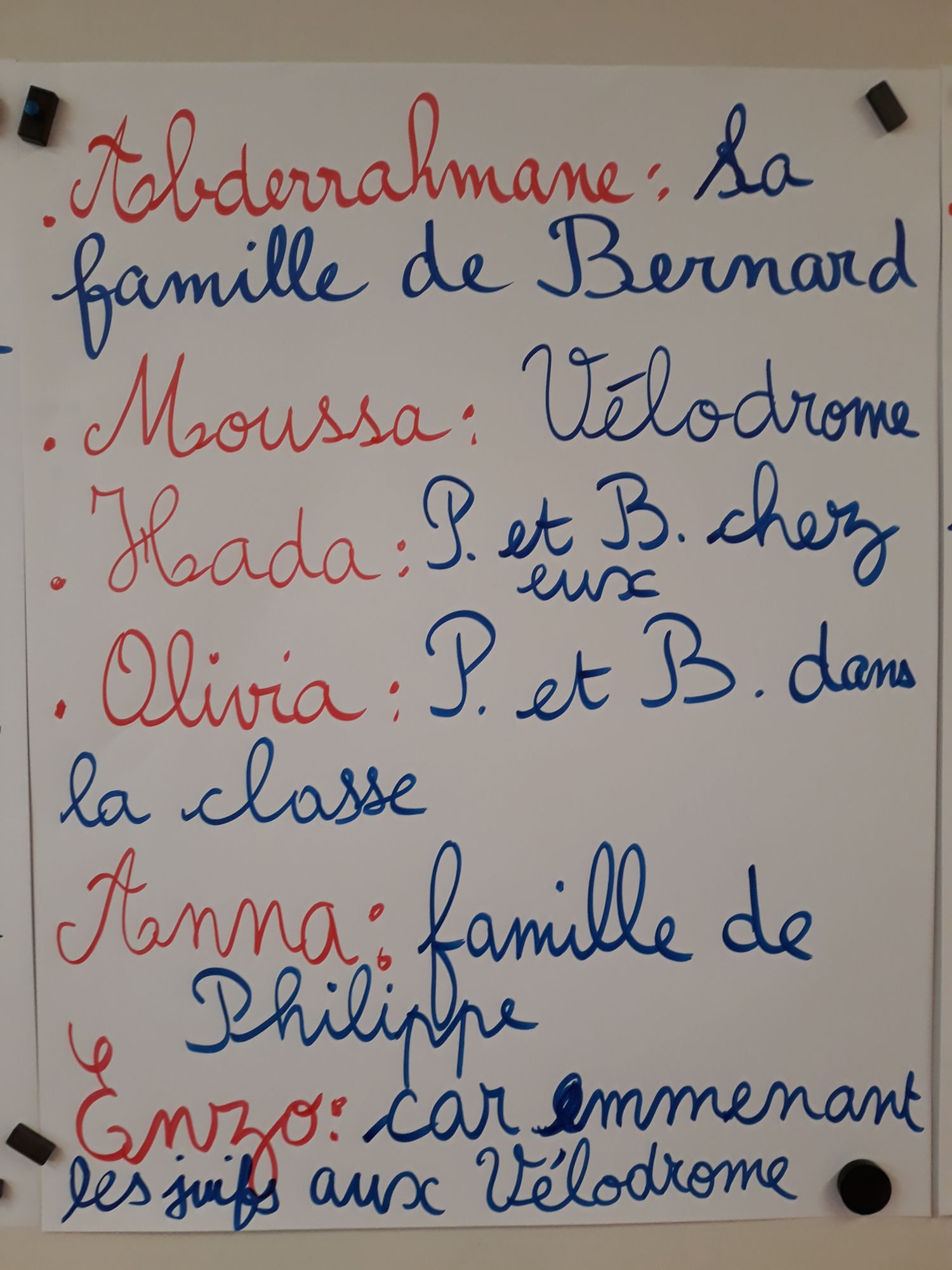 Séance 1 : Nous avons tenté d’imaginer la vie de Bernard et Philippe à Ivry, la vie du quotidien, mais aussi les obligations, interdictions et leurs arrestations en s’appuyant sur des éléments visuels.