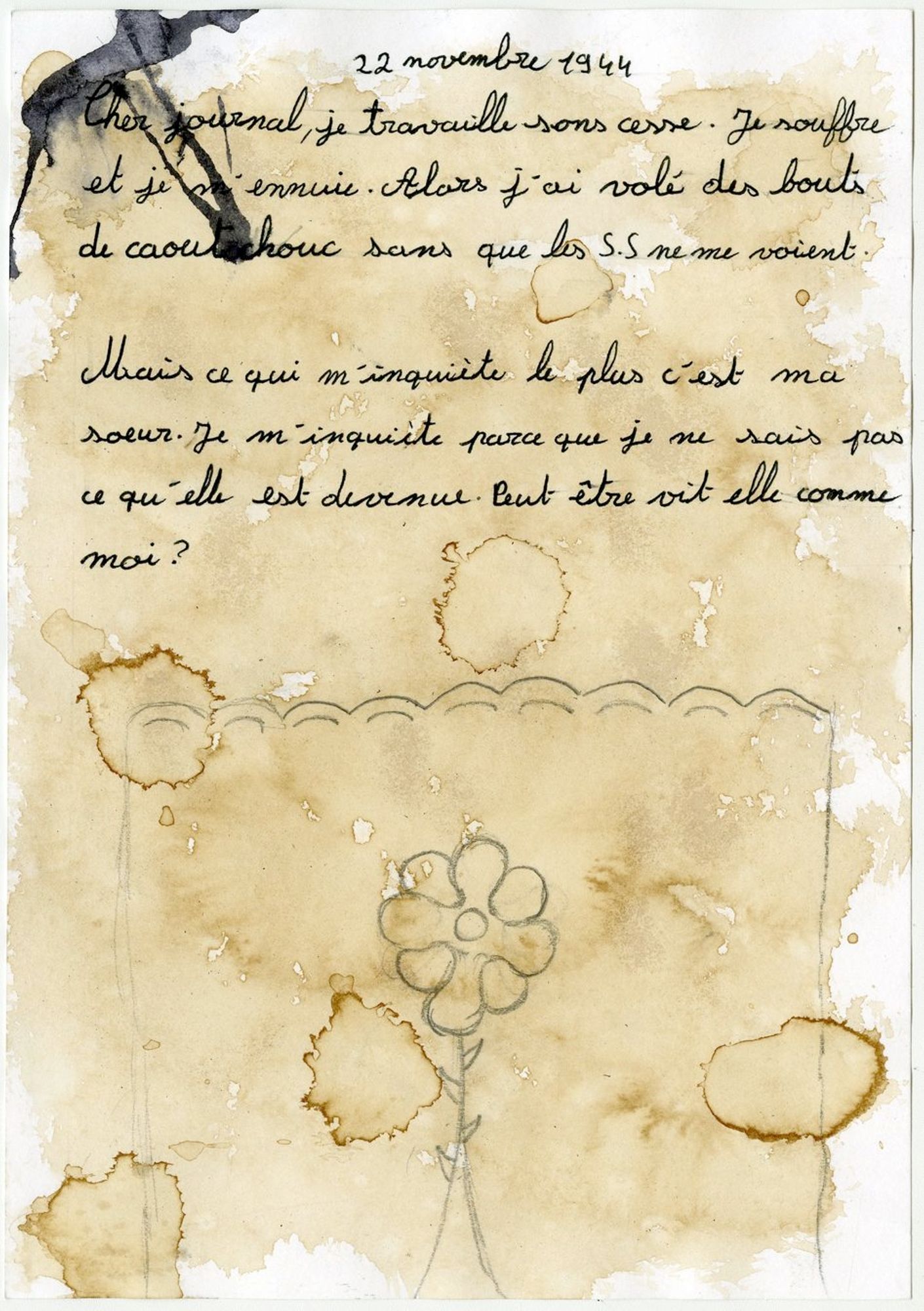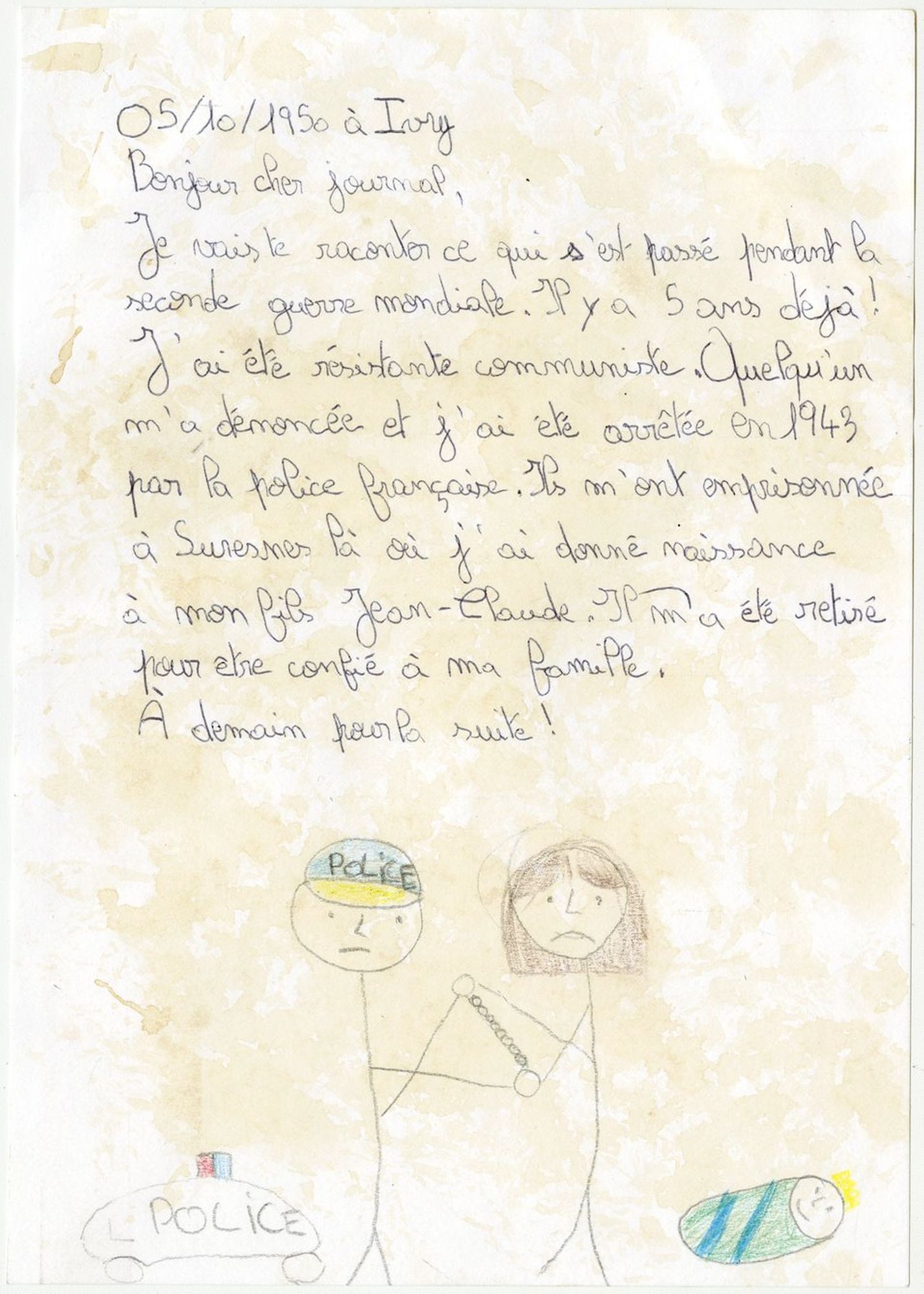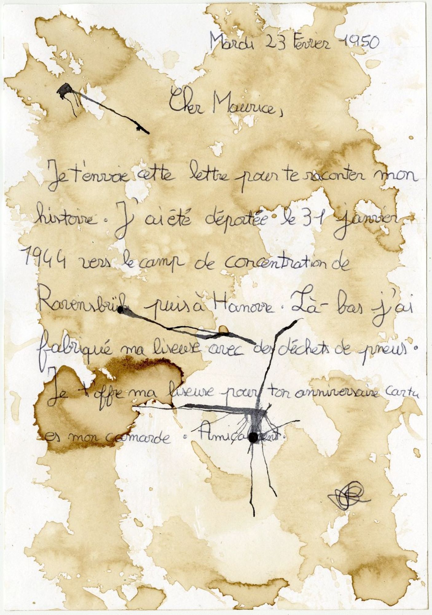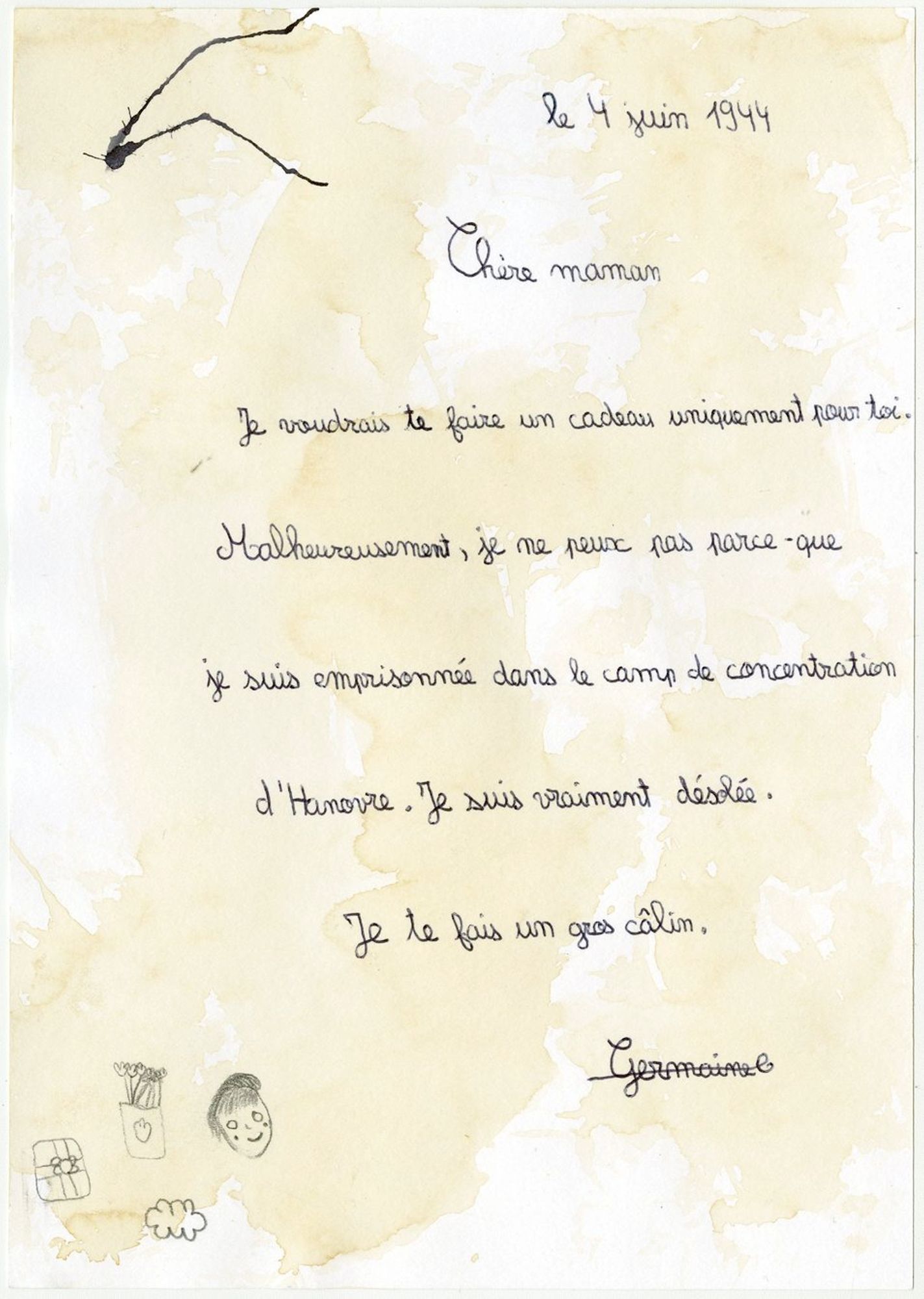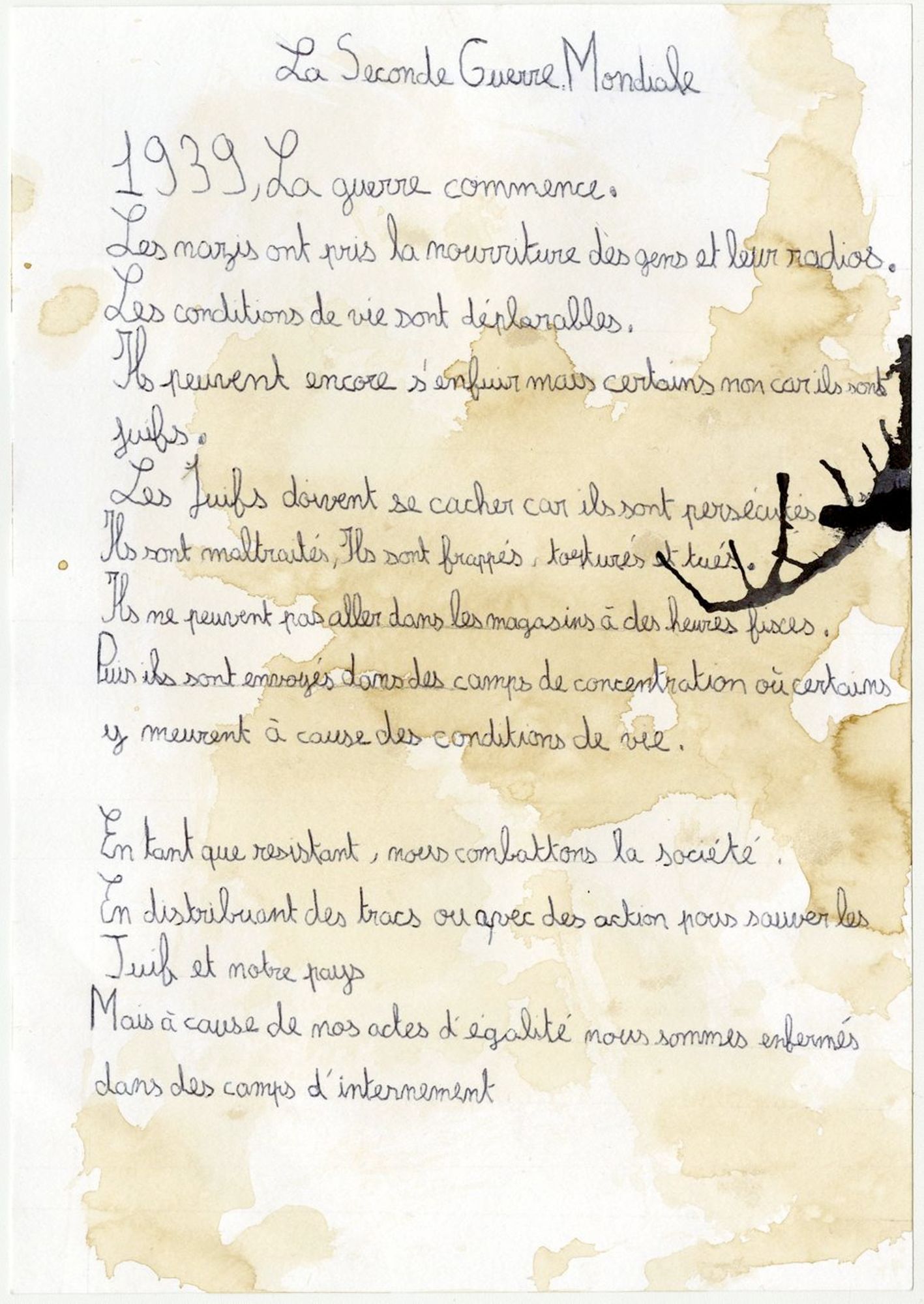 En trois séances de travail en classe, les élèves ont conçu un recueil de textes qu’ils ont imaginé comme celui que Germaine Maillet aurait pu conserver dans sa liseuse pendant sa déportation et après sa libération. Par souci de réalisme, ils ont mobilisé tout ce qu’ils ont appris de sa vie et se sont inspirés des réalisations clandestines des déportés dans les camps de concentration nazis. Ils ont produit des lettres, des poèmes, des récits documentaires, des recettes de cuisine… Àtravers la sensibilité et l’imagination des élèves, ces textes interprètent et incarnent des étapes du parcours de Germaine Maillet durant la Seconde Guerre mondiale.