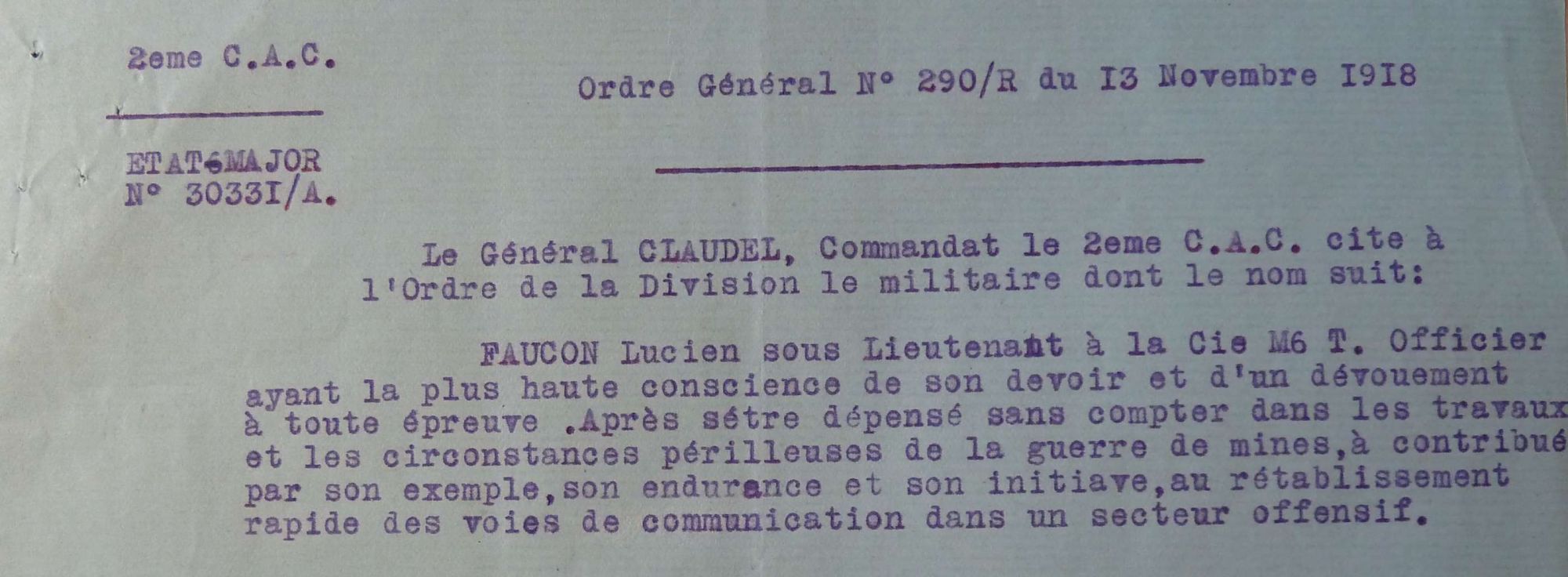Le 13 septembre 1918, après l'attaque du saillant de Saint-Mihiel (Meuse), Lucien Faucon relève :